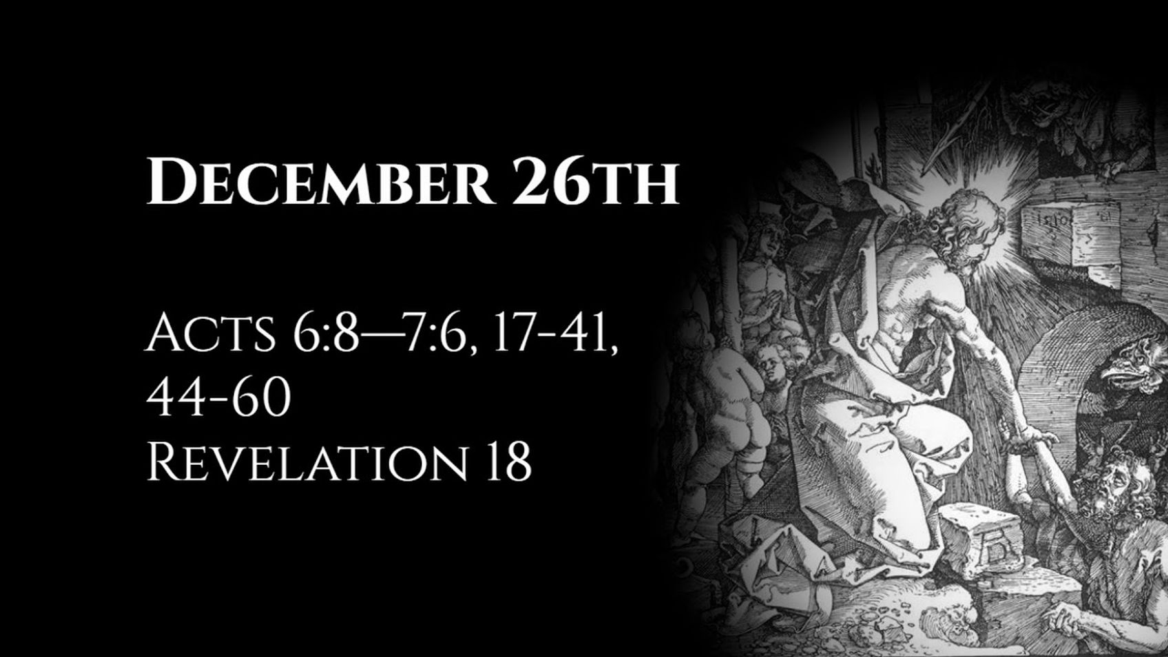December 26th: Acts 6:8—7:6, 17-41, 44-60 & Revelation 18